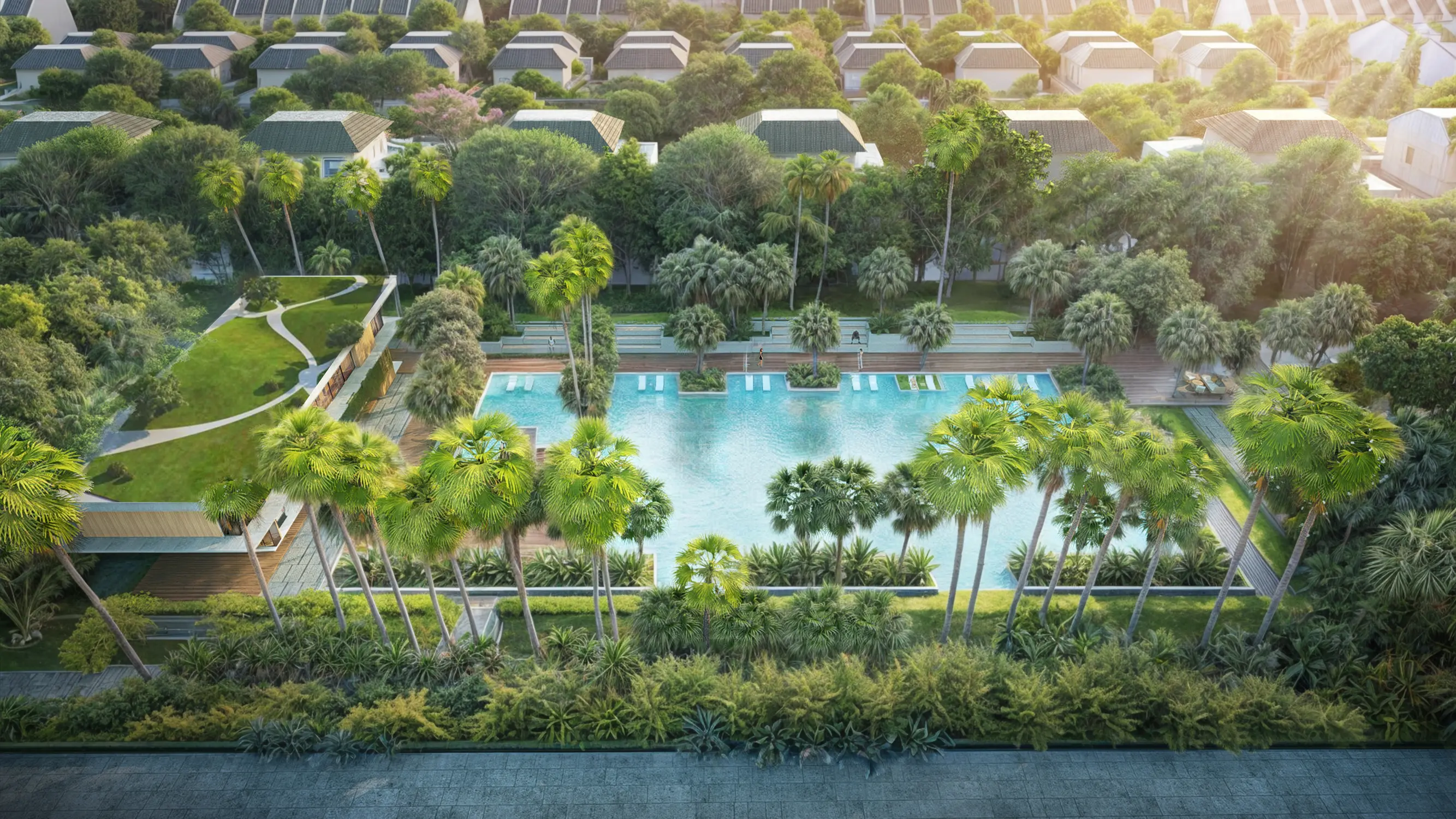 This clustering strategy enhances operational efficiency while establishing clear urban focal points. More importantly, these amenities are carefully integrated within the green framework, ensuring that the overall environment retains a sense of openness, calmness, and resort-like quality—true to its peripheral location.