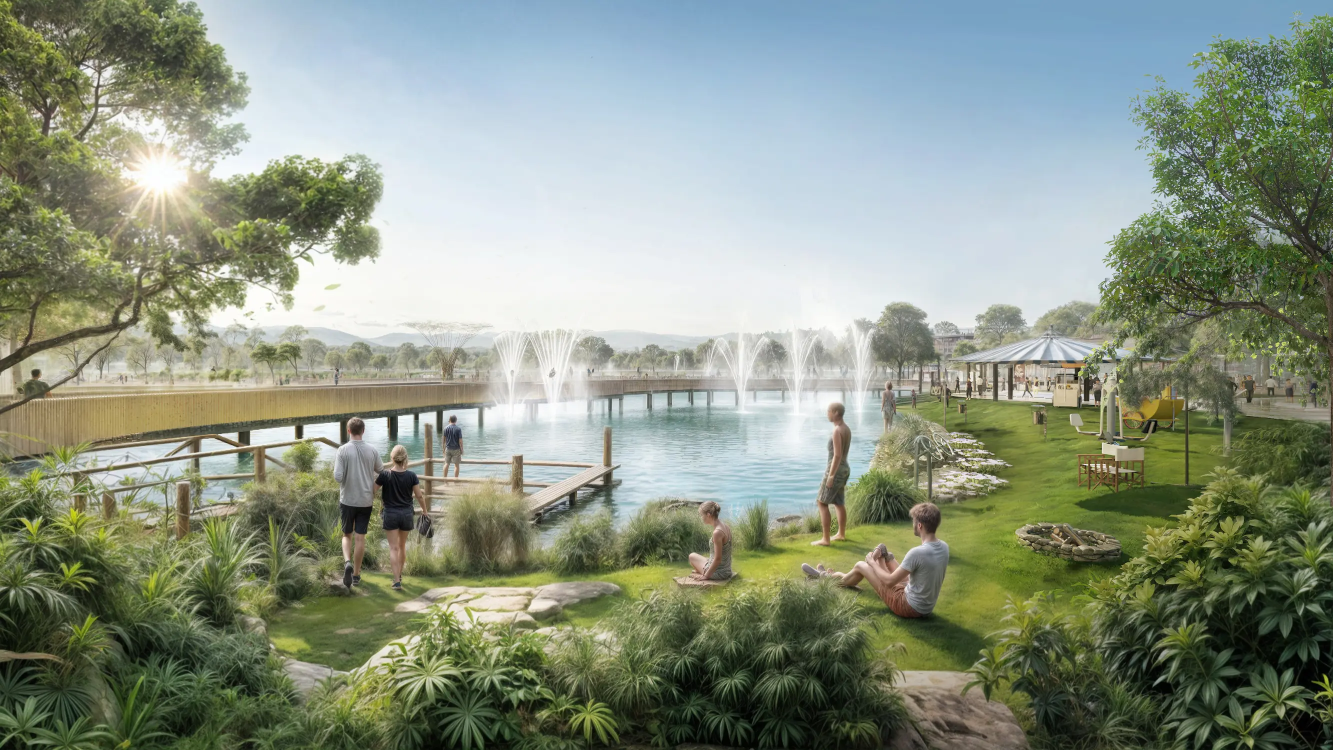 This layered structure minimizes conflict between urban activity and natural systems, while creating a continuous spatial transition from dynamic to tranquil environments.